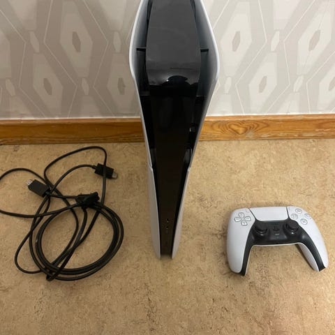 Jag har haft ps5 i några år men har inte använt det så mycket eftersom jag föredrar pc. Ps5 prestanda är samma som när den köptes och har inga skador. Kontrollen har små jack efter djur men inget som påverkar funktionen och kommer med skal.