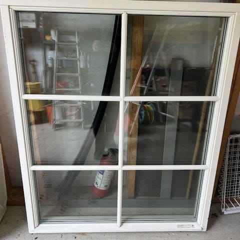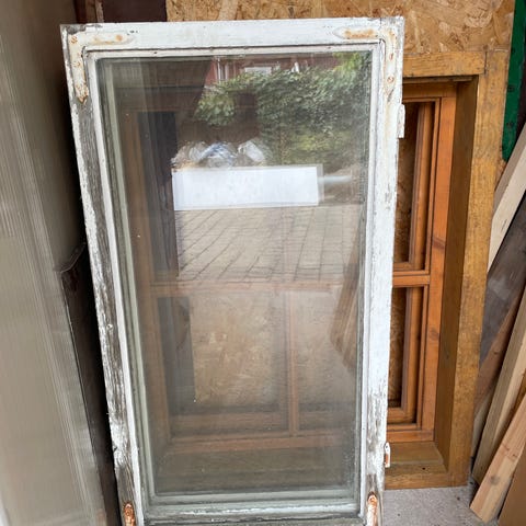 Fönster med vit karm i bra skick. H 160 B 90.