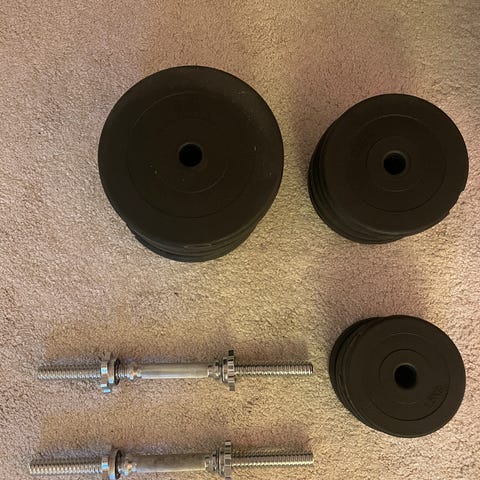Skivstång med viktskivor och fjäderlås
