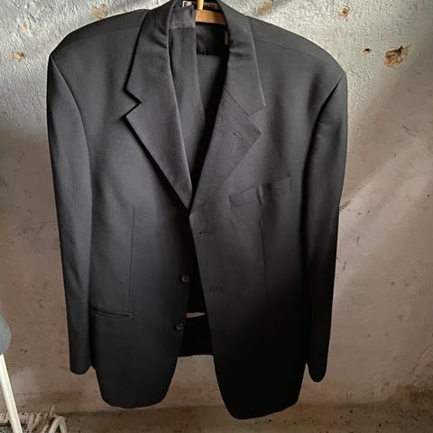 H&M kostym för herr i storlek 52. Kostymen är blå och tillverkad i 67% polyester 30% viscose 3% elastane. Setet består av kavaj och byxa och skjorta i matchande färg, med slimfit passform.