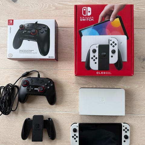 Nintendo Switch OLED spelkonsol vit med tillbehör