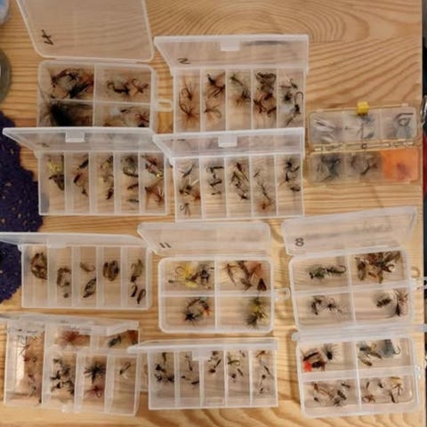 8 Stycken gäddflugor 2 stycken med krok 6 stycken som man sätter dit krok när man så önska vilken fluga man ska använda Stållina knyt bar och dom andra enligt bild