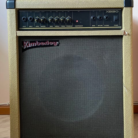 Kustom gitarrförstärkare i svart utförande. Kompakt modell med inbyggd högtalare och frontgaller i metall. Panelen upptill har flera rattar för volym och tonkontroll samt anslutning för instrumentkabel. Baksidan har öppen konstruktion där högtalare och nätkabel är åtkomliga. Passar för elgitarr i hemmamiljö, övning eller mindre sammanhang där en mindre förstärkare behövs.