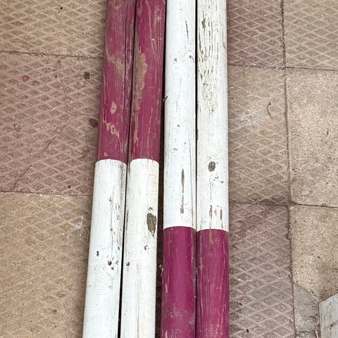 Begagnat nerplockat A-staket med två slanor. Det finns stolpar och slanor samt grind för ridbana 20x40. Det har legat ute så det behöver tvättas men det är fullt brukbart.