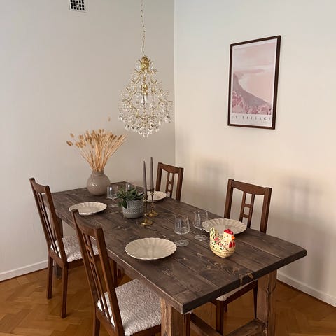 Matgrupp i rustik stil - bord + 6 stolar