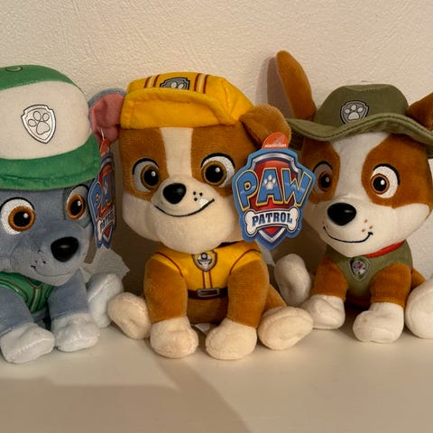Paw Patrol mjukisdjur set i flerfärgade utföranden. Setet består av flera olika karaktärer från serien, alla i sitt typiska utseende med uniformer och tillbehör. Mjukisdjuren är tillverkade i mjukt textilmaterial och är anpassade för barnlek och samlarbruk. Passar som leksak, dekoration i barnrum eller som samlarfigurer för barn som gillar Paw Patrol.
