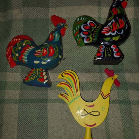Tupp prydnadsfigur i flerfärgad design. Figuren är målad i svart, rött, gult, blått och vitt med hjärt- och prickmotiv. Passar som dekoration i hemmet, exempelvis på hylla, bord eller i kök. Lämplig som samlarföremål eller souvenir.