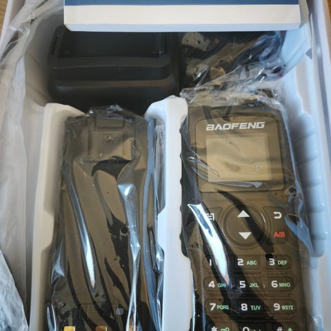 Ett par bärbara marina VHF kommunikationsradioapparater i så gott som nyskick med nya batterier, laddare för 12 och 230v