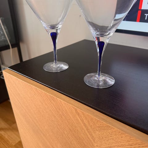 Det finns 6 vatten glas och 6 vinglas