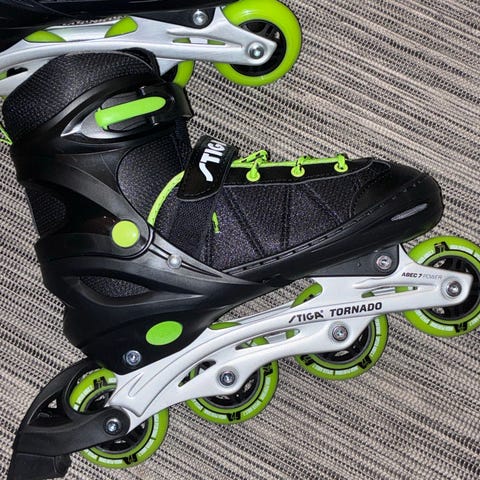 Blå/svarta inlines till barn, justerbara strl 35-38.