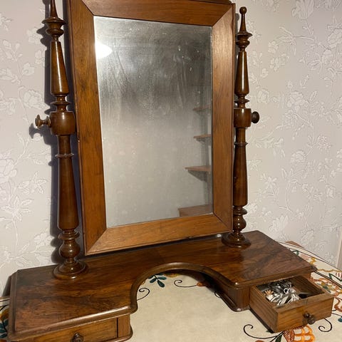 Antik sminkspegel / bordsspegel i trä