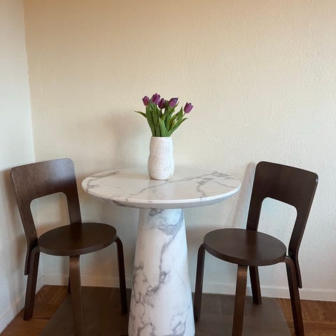Säljer mitt stilrena marmorbord Deila från Sleepo i vit marmor. Ett väldigt elegant och exklusivt soffbord som passar perfekt i ett modernt eller skandinaviskt hem.