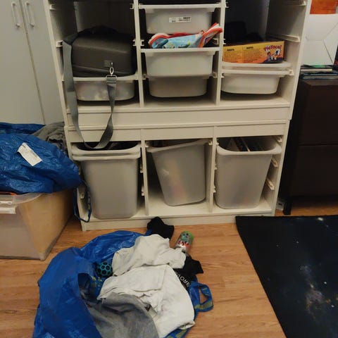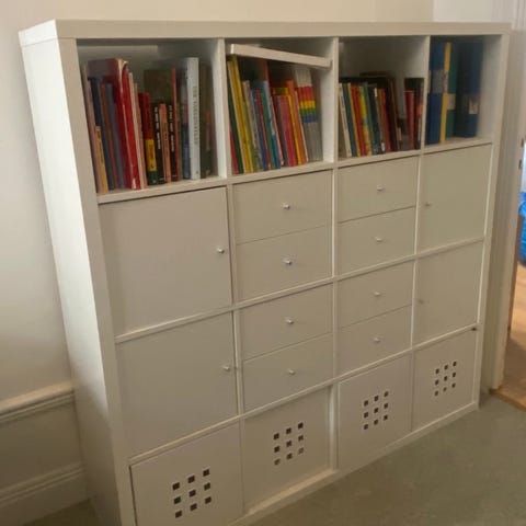IKEA hylla med låda vit rosa