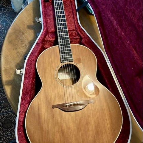 Välbyggd parlourgitarr med solitt cederlock. mahogany i sidor och botten. Rosewood greppbräda. Helt ny i kartong