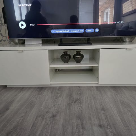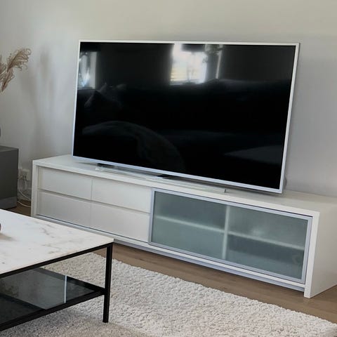 Vit högglans tvbänk m lådor