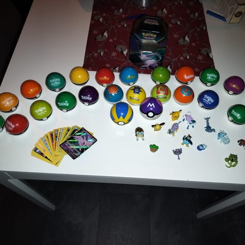 Pokemon leksaksfigurer med flera pokébollar och två bälten. Setet innehåller små plastfigurer föreställande olika pokemonkaraktärer samt öppningsbara pokébollar i olika färger. Med följer även två justerbara bälten med pokemonmotiv och spännen med pokébollmotiv. Lämpligt som samlarobjekt eller lekset för barn som gillar Pokemon. Säljes i befintligt skick.