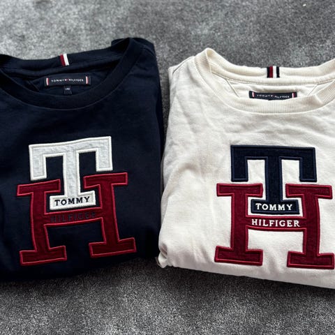Tommy Hilfiger sweatshirt i storlek 164. Tröjan är vit och tillverkad i bomull och elastan. Klassisk rund halsringning med ribbade muddar vid hals, ärmslut och nederkant. Diskret Tommy Hilfiger-logga på bröstet.