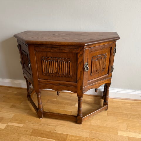 Vintage barskåp / serveringsbord i trä med avtagbar bricka