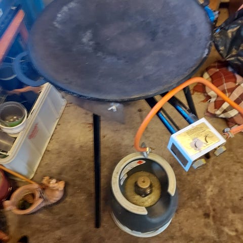 Hej, säljer min gasol stekhäll i gjutjärn med lock