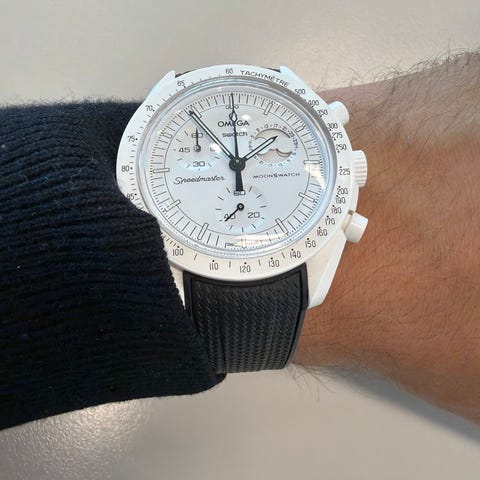 Omega x Swatch-klocka som släpptes exklusivt i fysiska Swatch-butiker i mycket begränsad upplaga.