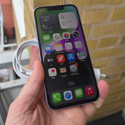 iPhone 14 med 128 GB lagringsutrymme. Telefonen har en batterikapacitet på 85% så håller perfekt