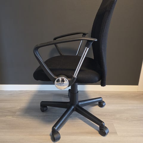 Haft i ungefär ett år och sparsamt använd. Går att höja och sänka. Katt i hemmet.
