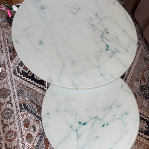 Kromat underrede med glasskiva som liknar marmor.