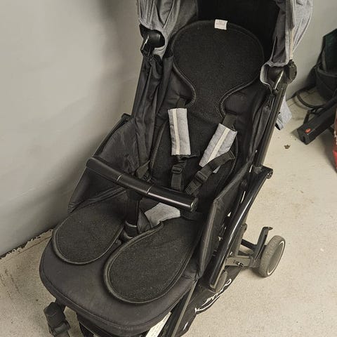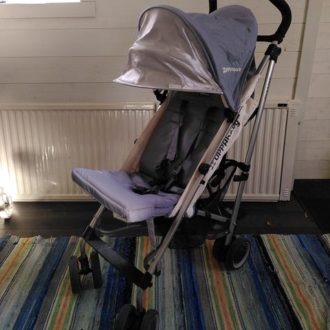 Det är väldigt enkelt att fälla ihop vagnen till ett kompakt format. Vi hade den som handbagage. Transportväskan medföljer. Samt en mugghållare.