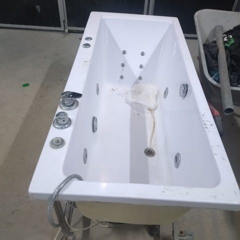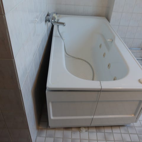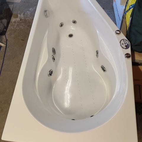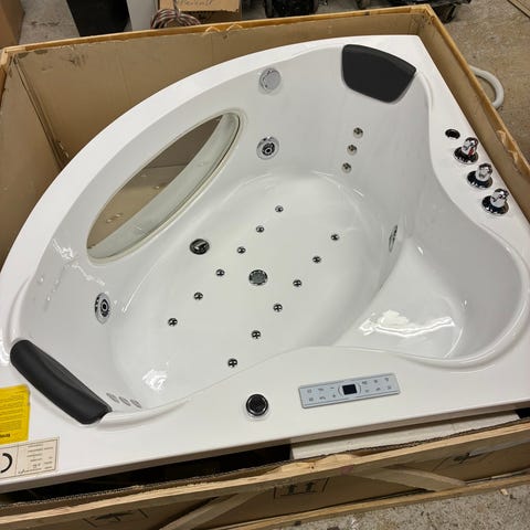 Badkar med massagefunktion i vitt utförande. Utrustat med flera munstycken för vatten- eller luftmassage samt synliga anslutningar för installation. Passar för inomhusbruk i badrum där det finns möjlighet att ansluta vatten, avlopp och el enligt gällande regler.