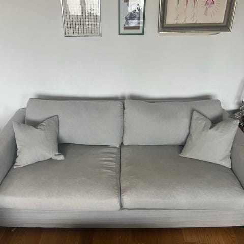 Säljer min Furninova Petito 3-sits soffa med klädsel i Tristan Dark Grey. Soffan är tung, stabil och väldigt bekväm – man märker tydligt kvaliteten i både material och konstruktion.
