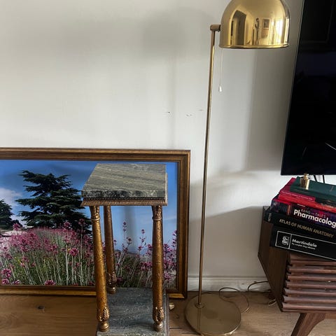 IKEA piedestal med marmorskivor grön och guld