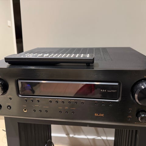 På framsidan finns volymreglage, funktionsknappar och ingångsväljare.