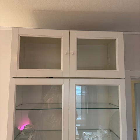 BILLY / OXBERG Bokhylla med panel-/vitrindörrar, Ink dimbar belysning (3st)