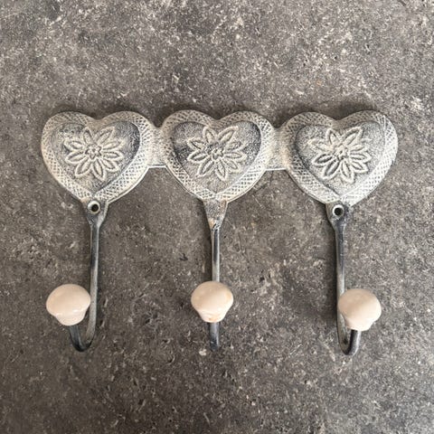 IB Laursen väggkrokar i vitlackerad metall. Krokarna har dekorativ bakplatta och rundade knoppar i kontrasterande ljus ton. Passar för upphängning av till exempel kläder, väskor eller handdukar i hall, sovrum eller badrum. 2 stycken