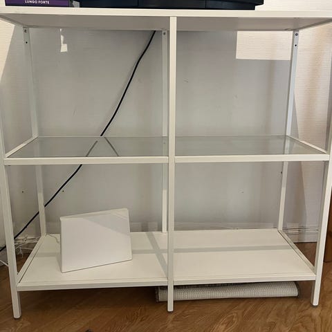 Glasbord med ram i vit metall