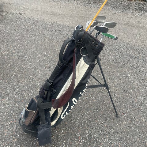 Bärbag inkl ett gäng damklubbor. Setet innehåller flera järnklubbor,en putter samt ”woods”. Bagen har bärrem för enkel transport. Passar nybörjare eller spelare som vill ha med ett gäng klubbor för spontana spelrundor. Hämtpris Landvetter