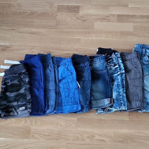 6 par shorts i strl 116, varierande längd och material i mycket fint skick.