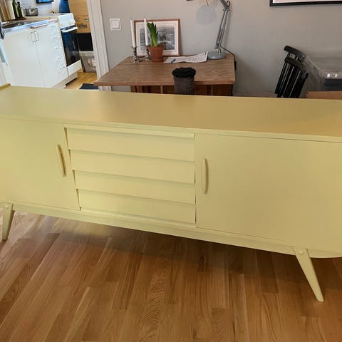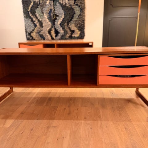 Fin stereobänk/ TV-bänk/ skänk i brunt träslag. Samma nyans som teak men troligtvis annat träslag.
