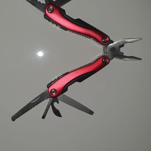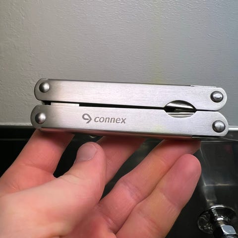 Leatherman multiverktyg i rostfritt stål. Verktyget har bland annat tång, knivblad, sågblad och flera andra infällbara funktioner. Passar för allroundbruk som enklare reparationer, friluftsliv och vardagssysslor där ett kompakt multiverktyg behövs.