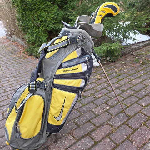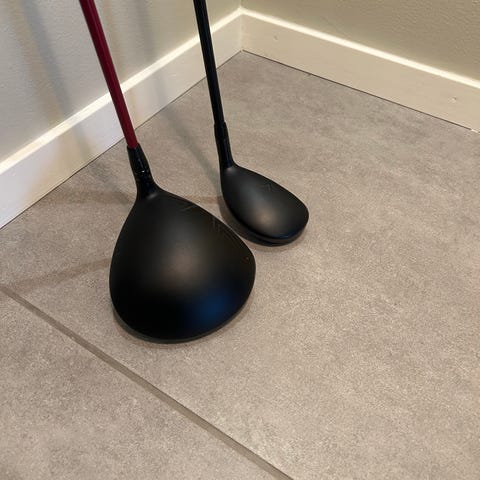Säljer två lättspelade OneSwing Evolution golfklubbor bestående av en driver och en hybrid. Klubborna har metallhuvuden med silverfärgad finish och svarta samt röda detaljer. Passar för golfspelare som söker en driver för utslag och en hybridklubba för slag från fairway eller ruff.