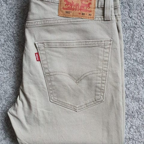Ett par Levi's 512 Slim Fit Tapered Leg jeans i en ljus nyans. Jeansen har en klassisk design med fem fickor, dragkedja och knappstängning. Den avsmalnande benpassformen ger en modern silhuett.