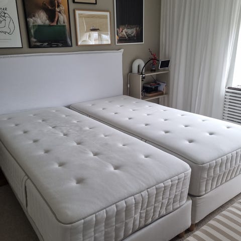 2st 80cm breda sängar med mörk grå/svart gavel 120cm hög 160cm bred fint skick och bäddmadrass 7cm säljes 2500kr vid snabb försäljning