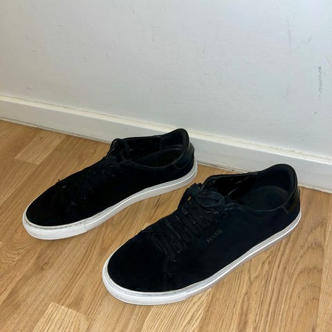 Morjas sneakers i mörkblå mocka, storlek 41. Låga snörskor med vit sula. Passar till vardags, jobb eller finare tillställningar.