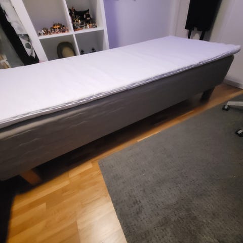 Säng medel. 90x200, 2st sängkappor 1 beige volang.,