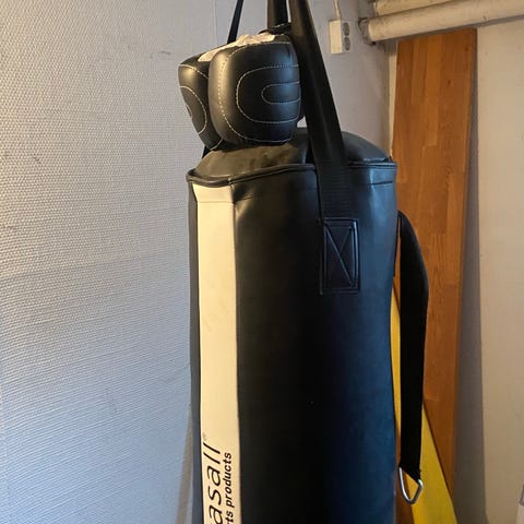 Boxningssäck i svart material med röd detalj upptill. Utrustad med kedjor för upphängning i tak eller ställning. Lämplig för boxningsträning, konditionsträning och slag- och sparkövningar i hemmet eller på träningsanläggning.