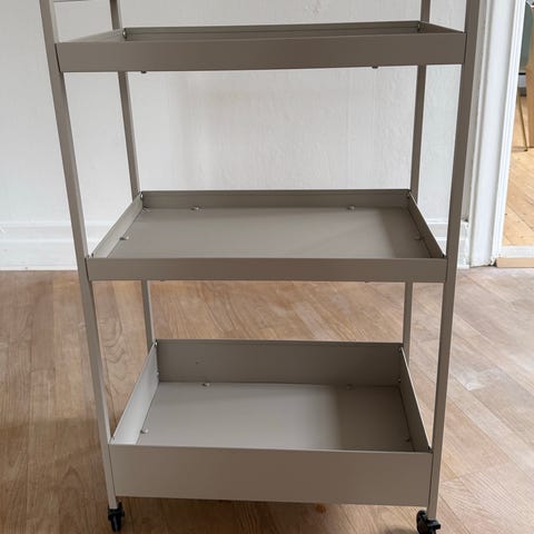 Rullvagn från Clas Ohlson. 3 korgar som går att flytta. Mått 41×25×64cm