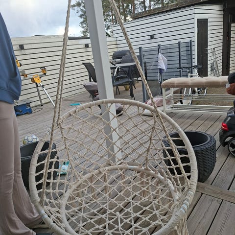 Jätteskön och fin fåtölj/vilstol i naturlig rotting säljes pga platsbrist (köpt sen vår 2025 och stått väderskyddad på inglasad balkong). Tillhörande vit dyna ingår!