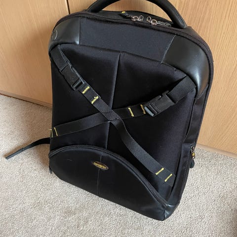 Samsonite tygväska unisex marinblå med bruna detaljer