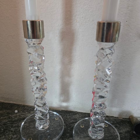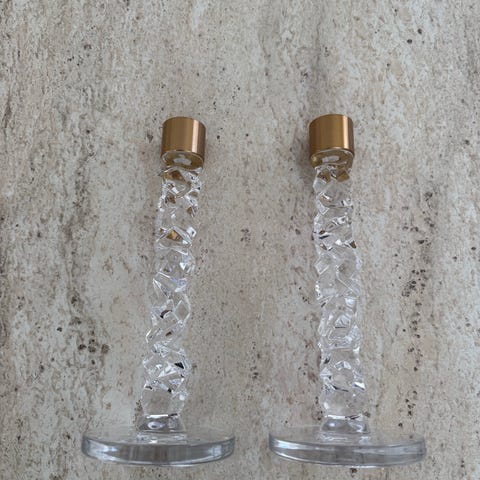Carat ljusstakar från Orrefors, i set om två stycken. Formgivna av Lena Bergström och är gjorda av kristallglas.