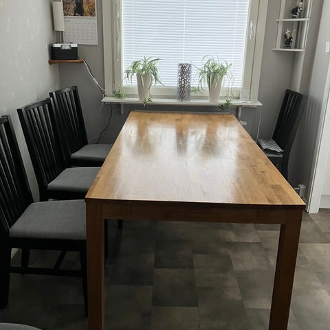 Rejält ekbord med 6 stolar
